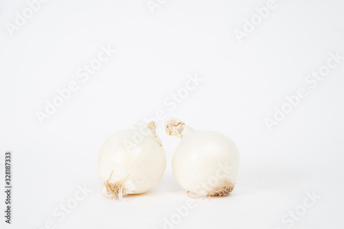 Garlic onion on a white background. The concept of food and cooking. Eating vegetables and healthy nutrition. Eating white onions, adding to dishes.