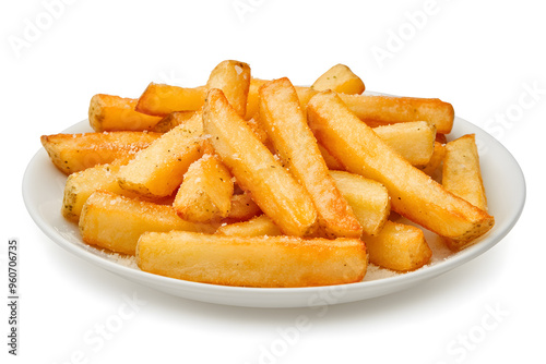 Garlic Parmesan French Fries on white plate, Isolated on White Background