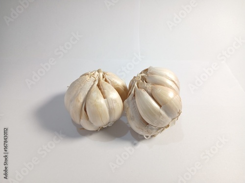 garlic with the shell still on it with a white background