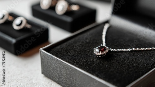 Garnet-studded elegance nestled in velvet boxes, capturing solstice mysteries and Victorian regality, perfect for Gothic Revival celebrations