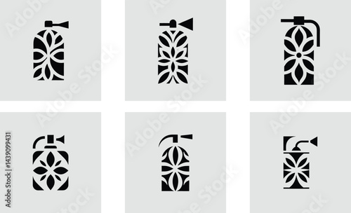 Gas extinguisher logo with floral decoration logotype vector art set design