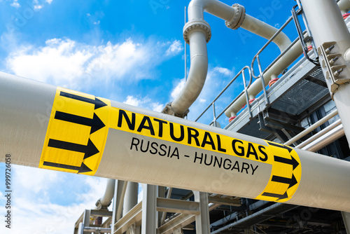 Gas pipeline, equipment for pumping natural gas. Concept Russian gas in Hungary