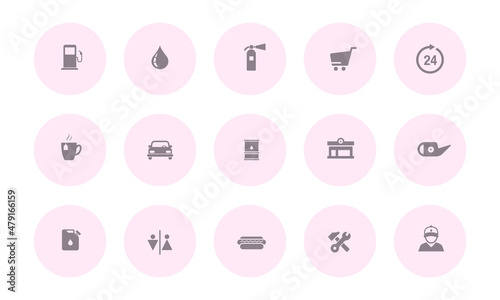 Gas station. Gasoline. Refill. Vector image. Icons.