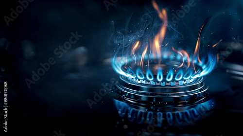 Gas stove flame with glowing blue and orange fire
