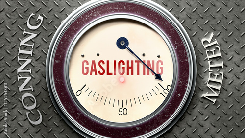 Gaslighting and Conning that is hitting a full scale, showing a very high level of gaslighting, overload of it, too much of it. Maximum value, off the charts. ,3d illustration