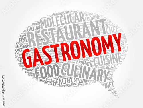 Gastronomy message bubble word cloud collage, concept background