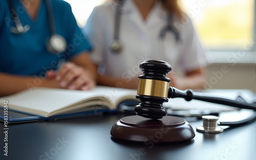 Gavel and stethoscope. medical jurisprudence. legal definition of medical malpractice. attorney. common errors doctors, nurses and hospitals make. High quality