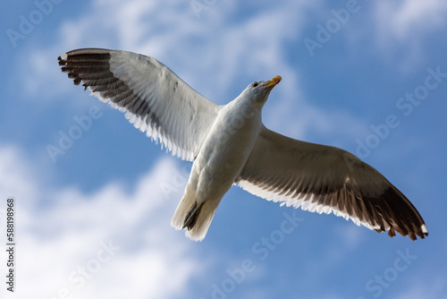 Gaviota Dominicana (Larus dominicanus) en pleno vuelo