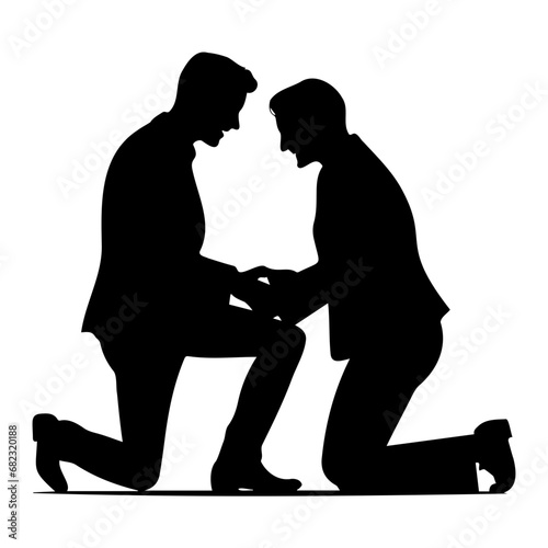 gay guys couple proposal on on knee Vector illustration. Silhouette.