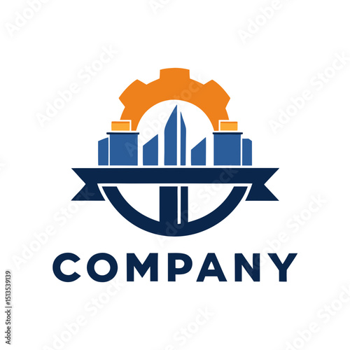 Gear and Cityscape Logo for Engineering or Manufacturing Company