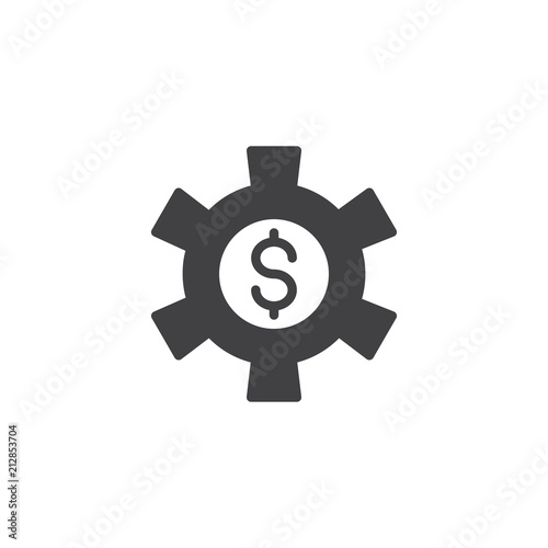 Gear and dollar vector icon. filled flat sign for mobile concept and web design. Financial Tools simple solid icon. Symbol, logo illustration. Pixel perfect vector graphics