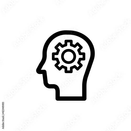 Gear in head icon vector, solid illustration, pictogram isolated on white. thinking icon vector from human mind collection