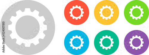 Gear setting vector icon set. Isolated black gears mechanism and cog wheel on white background. Progress or construction concept. Cogwheel icons. Vector illustration