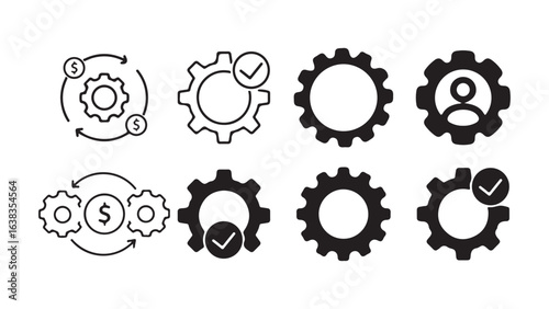 Gear setting vector set. Progress or construction concept. engineering symbols, industrial machinery, sprocket designs. Victor illustration eps10