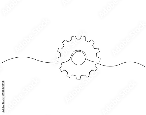Gear wheel continuous line drawing. Gear machine vector line art. Business process concept