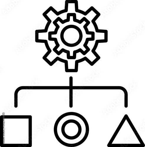 Gear with shapes for process flow line icon