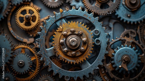Gears, cogs, and mechanical parts interlocking, symbolizing the synergy of industrial machinery