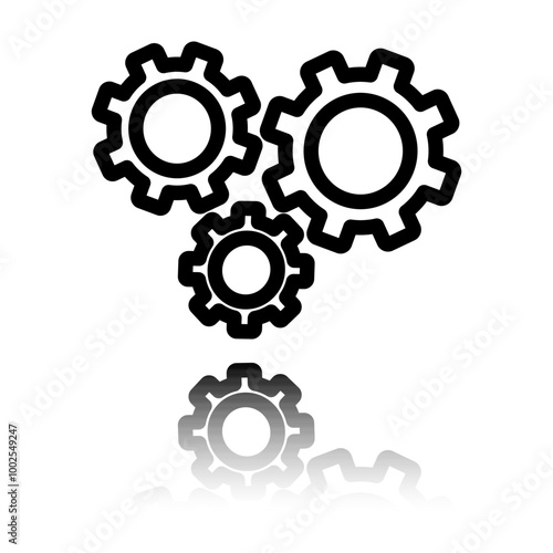 Gears simple icon vector. Flat design. Black icon with mirror reflection. White background
