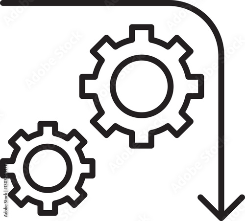 Gears with downward arrow icon line icon