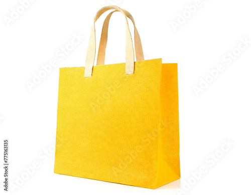 gelbe Papier Tragetasche isoliert auf weißen Hintergrund, Freisteller