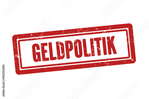 Geldpolitik (monetary policy) - A red stamp, isolated on white background.