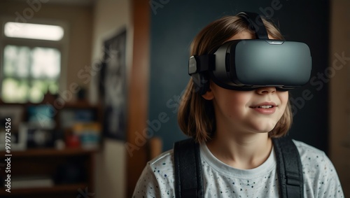 Gen Alpha or Beta kid using a VR headset for immersive learning.