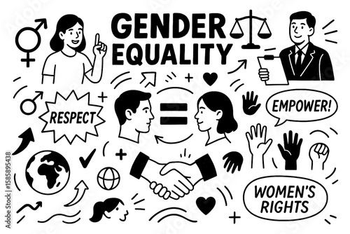 Gender equality concept with feminist icons, hand-drawn symbols, and inclusive empowerment doodles, Transparent Background