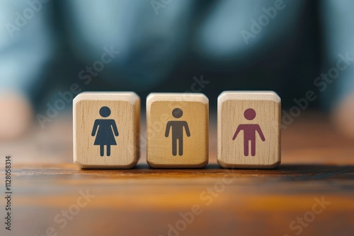 Gender Equality Representation with Wooden Blocks for Men and Women, Equal Opportunities and Fairness in the Workplace