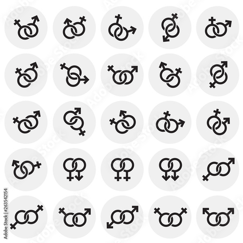Gender relations icons set on circles background for graphic and web design. Simple vector sign. Internet concept symbol for website button or mobile app.