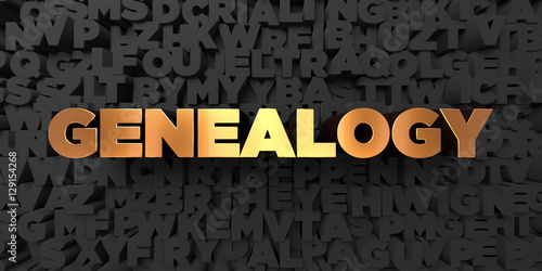 Genealogy - Gold text on black background - 3D rendered royalty free stock picture. This image can be used for an online website banner ad or a print postcard.