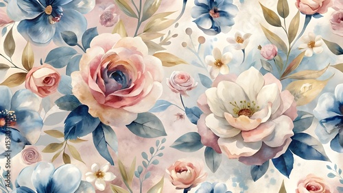 Generate a Seamless Watercolor Floral Pattern Roses, Magnolias, and Delicate Blooms in Soft Hues floral pattern