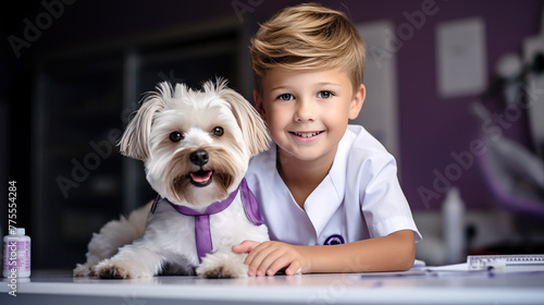generated illustration of Veterinarian doc with adorable dog in clinic