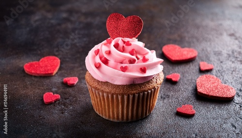 Generated image Creative food concept. Strawberry Cupcake muffin cake with topping of icing frosting