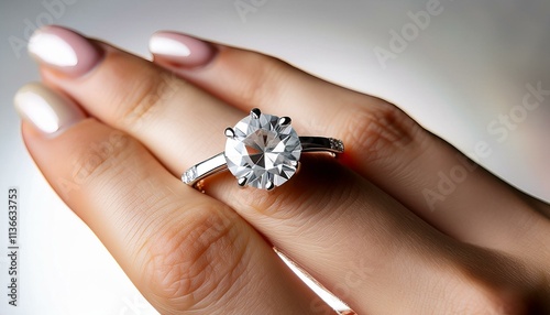 Generated image Finger wearing a luxury baguette and solitaire diamond band engagement ring