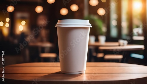 Generated imageDisposable coffee cup mockup on a café table with blank space for logo—ideal for branding, coffee shop promotions, packaging design, and marketing presentations