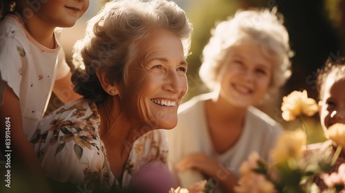 Generations of Love: A Grandmother with Her Family Enjoying a Sunny Day in the Garden