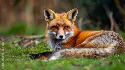 Generative AI : Male Red Fox Lying on the Grass in A National Park