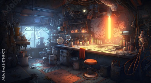 Generative AI - Workshop 038: A digital painting of a futuristic workshop