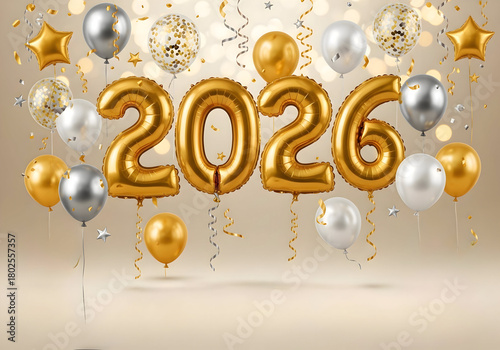 [Generative AI] 2026 골드 & 실버 풍선으로 꾸민 새해 파티 데코