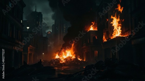 都市と火災風景,Generative AI AI画像