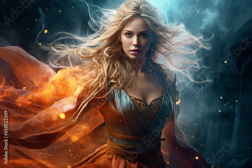 Generative ai collage photo of brave strong warrior fight in magical battle