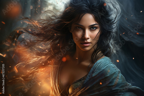 Generative ai collage photo of brave strong warrior fight in magical battle
