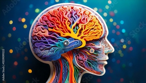 generative AI. Encephalography Brain colorful Paper Cut out, Autism, Stroke, Epilepsy and Alzheimer Awareness
