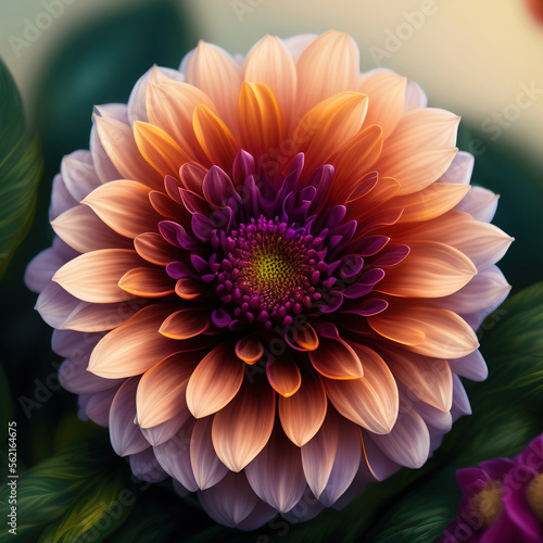 Generative AI: Fresh dahlia flower scolored in shades of lilac close up in the meadow