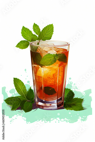 Generative AI illustration of a glass of green tea with mint