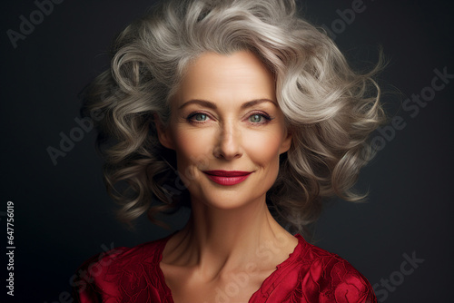 Generative Ai illustration of aged charming woman model amazing appearance