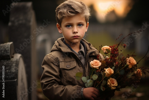 Generative ai illustration of big city cemetery people mourning for those who gone lost