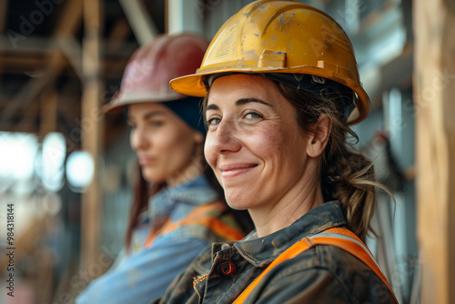 Generative AI illustration of smiling female construction engineer