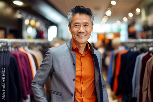 Generative AI picture Cheerful person shopaholic enjoy buying stuff clothes low prices store