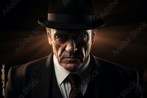 Generative AI portrait image of a confident senior man professional boss isolated on dark background